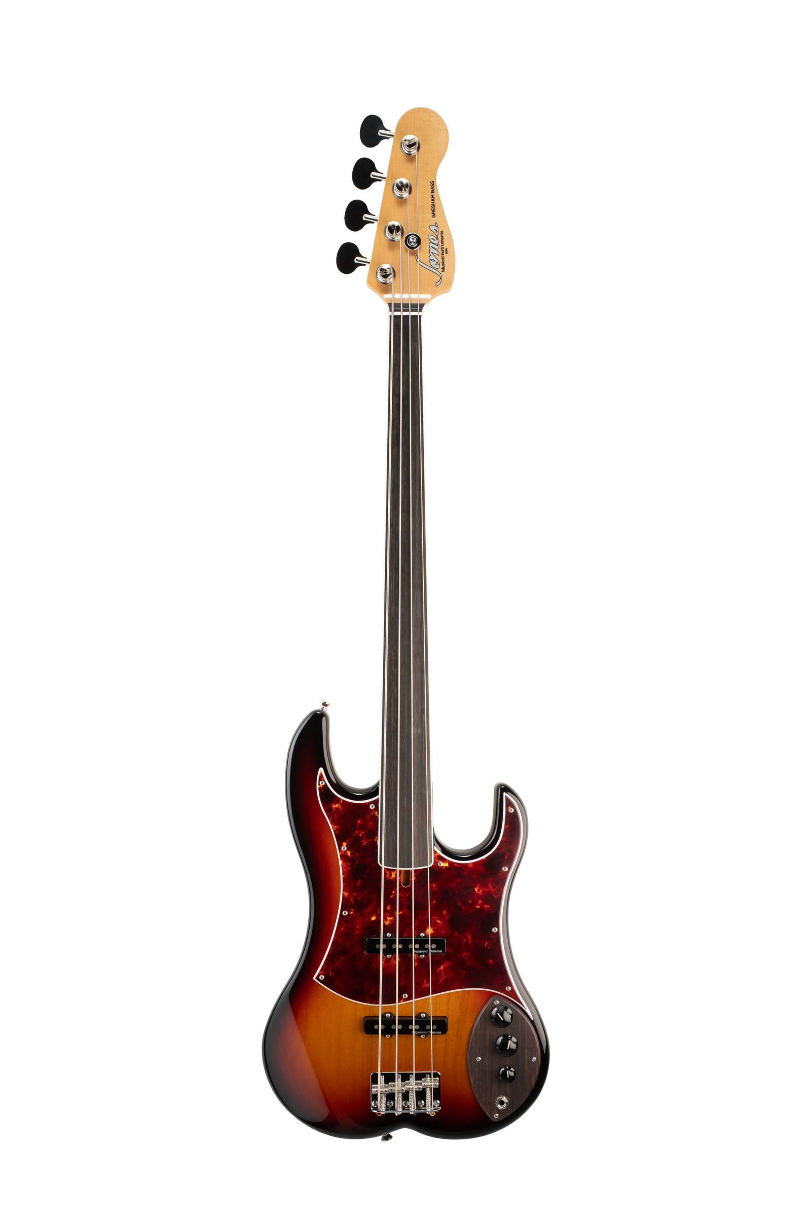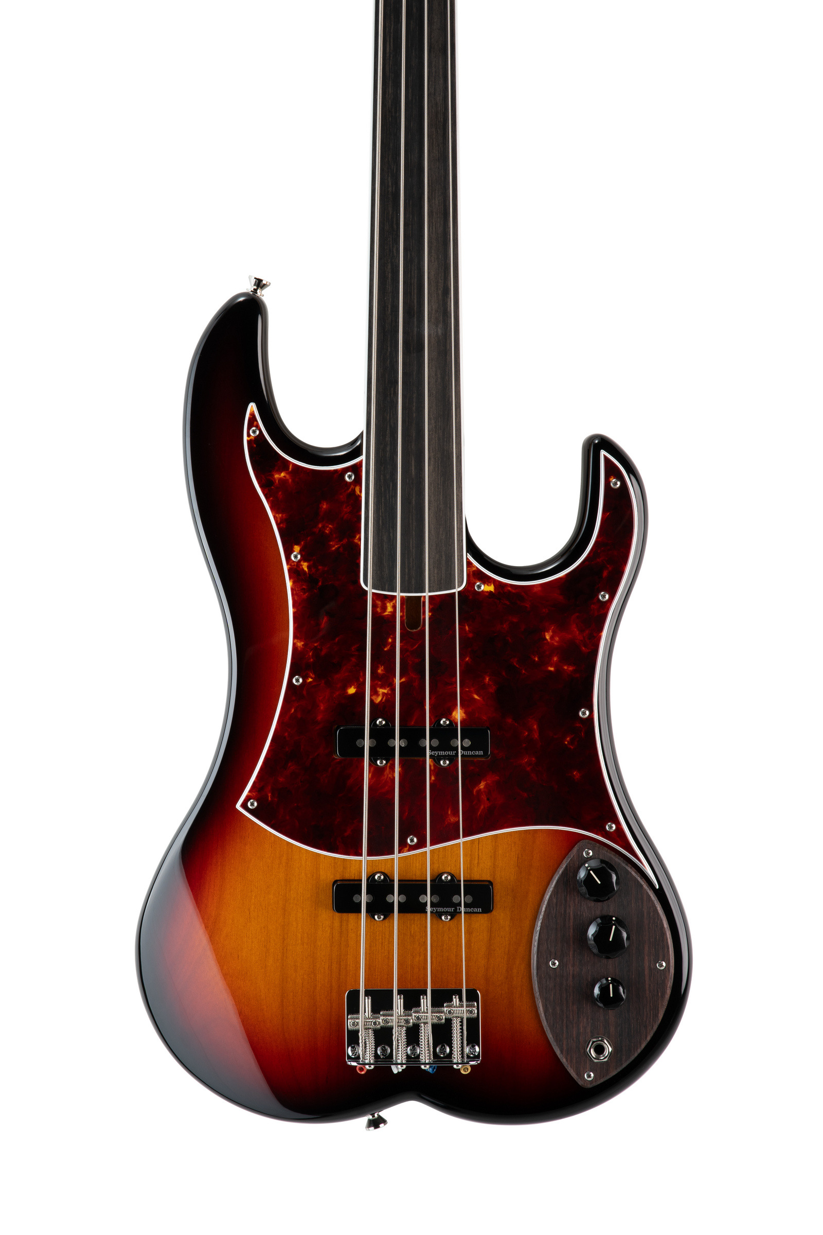 Our Fretless offering, influenced by Jaco Pastorius’ infamous “Bass of Doom”, delivers a resonant, lyrical sonic signature.The neck is maple with an Ebony fingerboard. Hipshot tuners,Seymour Duncan pickup and Labella Strings complete this build.