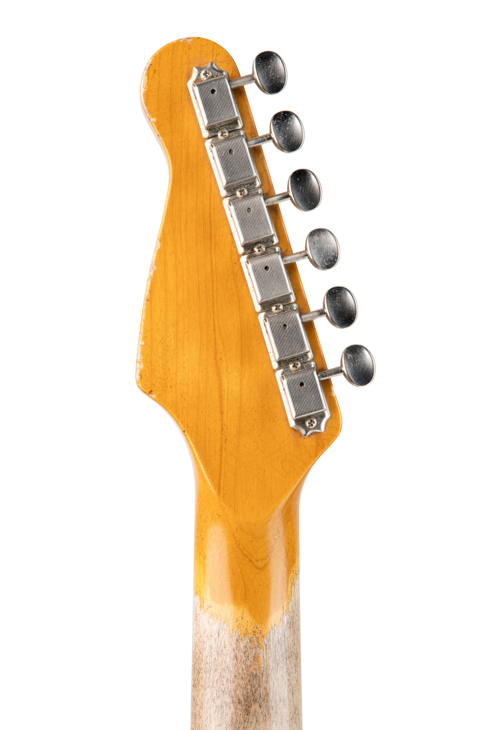 Finish Details: Relic Butterscotch Nitro with natural headstock, Chrome tuners and Brass Bridge hardware, Black 1-ply pickguard.